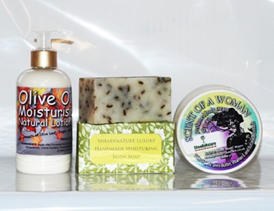 Olive Oil Moisturising Lotion & English Country Lavender Shea Butter Soap & Scent of a Woman Body Cream